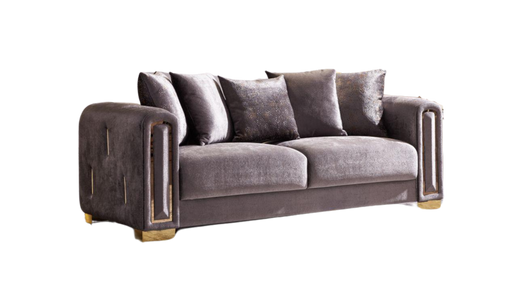 Impreza Sofa Indulge in the opulence of the Impreza Grey Sofa, where luxurious grey fabric meets elegant gold accents. Designed to bring a touch o...