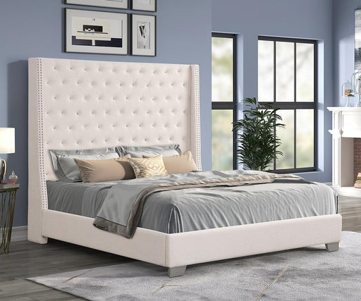 Lyra Fabric Bed Frame Key Features Boucle fabric upholstered, button tufted headboard with wings in beige; Sophisticated and understated design;...