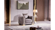 Indulge in the opulence of the Impreza Grey Sofa, where luxurious grey fabric meets elegant gold accents. Designed to bring a touch of refinement to your living room, this sofa offers both comfort and style. Its plush cushions and sophisticated design make it a perfect center piece for any home.